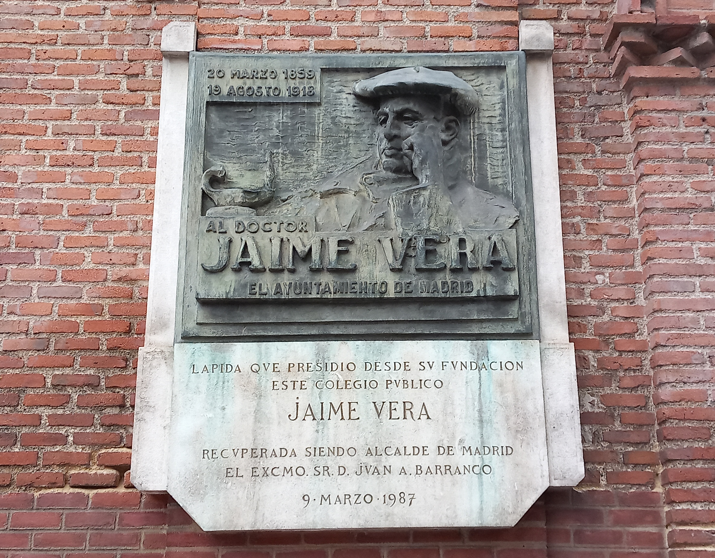 Un recorte de prensa desvela por qué hay dos imágenes diferentes de la placa al doctor Jaime Vera modelada por el escultor Ángel García, aunque hoy sólo quede una en el Grupo Escolar de su nombre en la calle Bravo Murillo.