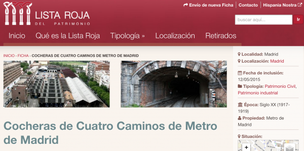 Hispania Nostra ha reconocido estos años en su Lista Roja varias de las causas de patrimonio que defiende MCyP; recoge por ejemplo el Real Canal de Manzanares, el Frontón Beti Jai, los Jardines del Seminario-Osuna en las Vistillas, el Palacio de Sueca o el de Monesterio en El Escorial. Ahora se suman las Cocheras, por lo que estamos sumamente agradecidos a tal reconocimiento.