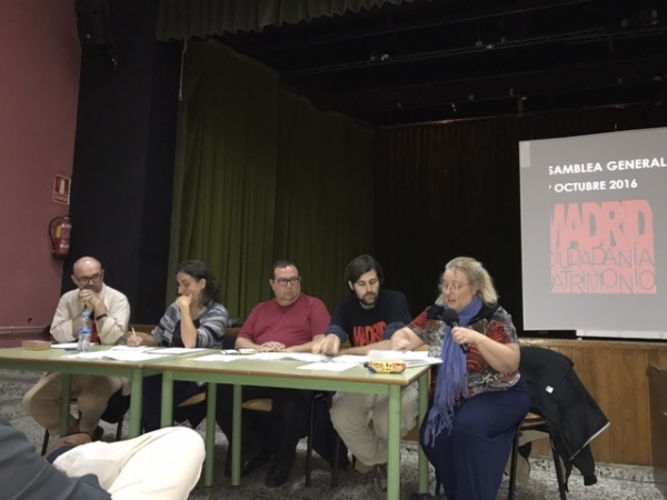El pasado miércoles día 19 de octubre se celebró con gran asistencia de socios la Asamblea anual ordinaria de Madrid, Ciudadanía y Patrimonio, en el Instituto de San Isidro de Madrid. En ella se expusieron los quince puntos del Orden del Día establecidos en la convocatoria, unos de tipo informativo, y otros para tomar acuerdos.